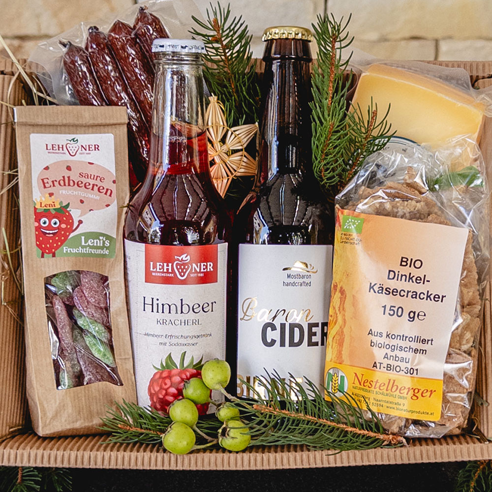 Lehner Fruchtgummis, Jausenstangerl, Lehner Kracherl, Cider, Schnittkäse, Bio Cracker